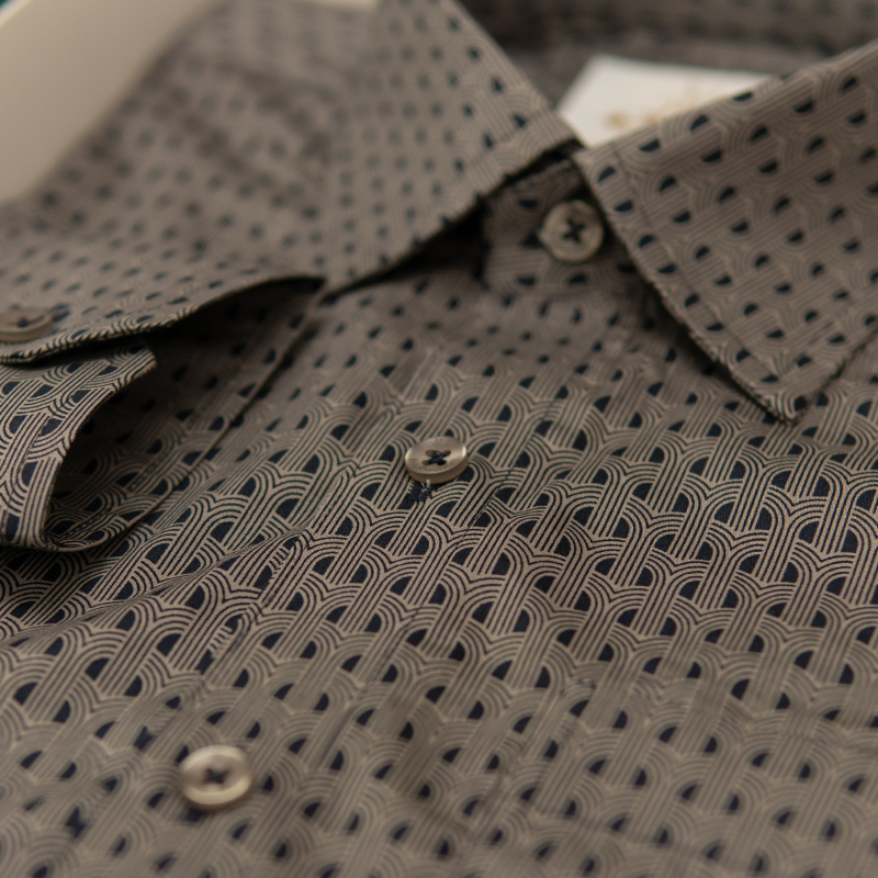 Effortlessly refined, the Arches pattern printed shirt soft Cotton Dress Shirt brings understated luxury to formal & casual dressing. Crafted from ultra-smooth soft premium cotton, its micro print adds depth and modern character without overpowering. The normal collar ensures a sharp, timeless silhouette. Looks exceptionally elegant with olive green, beige, or classic black trousers—a premium essential that remains always in stock for the discerning wardrobe.
