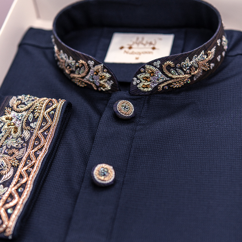 Celebrate Eid with timeless elegance in our Navy Blue Zardozi Panjabi, crafted for those who appreciate luxury with tradition. Designed with intricate zardozi embroidery on premium fabric, this Panjabi brings a royal and sophisticated look perfect for Eid prayers, family gatherings, and festive celebrations.