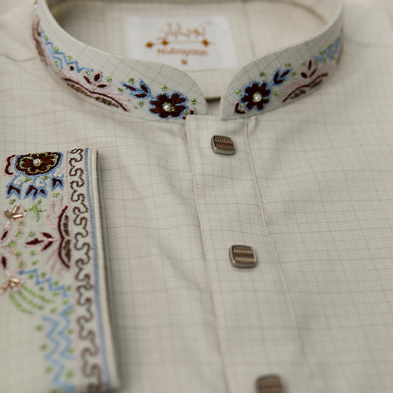 Dive into contemporary elegance with our Promenade striped Printed Subtle Sheen Super Soft Premium Cotton karchupi panjabi. Crafted from fine wool cotton, its soft dobby texture and sleek pin stripes create a refined formal and casual charm. Featuring intricate zardozi embroidery woven with shimmering metallic threads, this piece pays homage to traditional artistry while embracing modern sophistication. Ideal for festive occasions, cultural gatherings, or weddings.